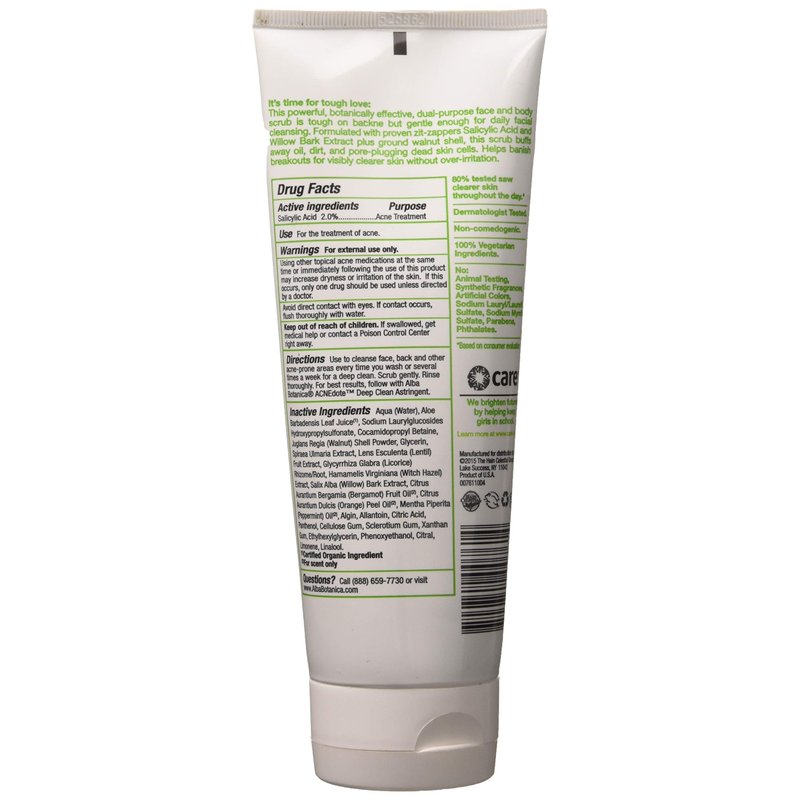 Alba Botanica Acnedote Face and Body Scrub 8 Ounce - 2 Pack