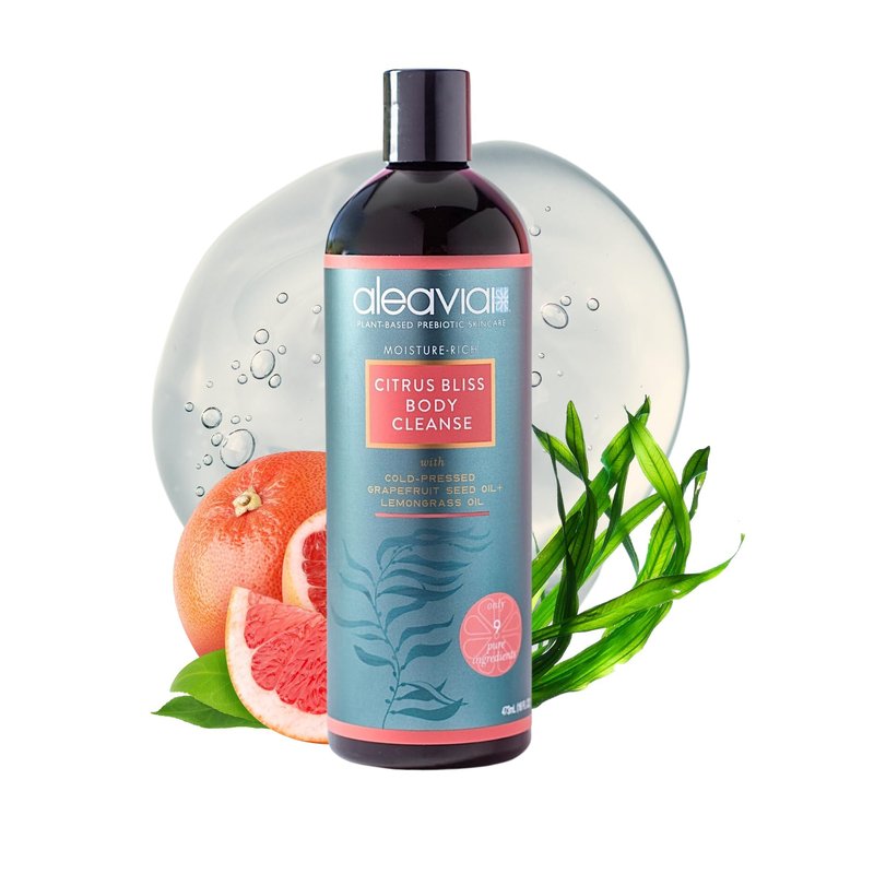 - EXCLUSIVE PREBIOTIC FORMULA: The Aleavia Citrus Bliss body wash features a unique prebiotic formula which naturally stabilizes the pH levels in your skin. Combined with the 8 simple, all natural, organic ingredients, Aleavia is capable of healing even the most persistent skin conditions including acne, rashes and redness.