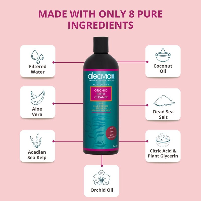 Aleavia Orchid Body Cleanse – Organic & All-Natural Prebiotic Body Wash with Pure Cold-Pressed Orchid Oil – Nourish Your Skin Microbiome – 16 Oz