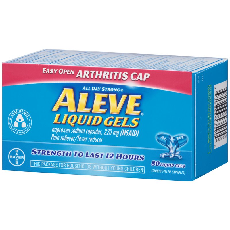 Aleve Liquid Gels with Easy Open Arthritis Cap, Naproxen Sodium Capsules 220 mg (NSAID), Pain Reliever/Fever Reducer, Fast Pain Relief, 80 Count
