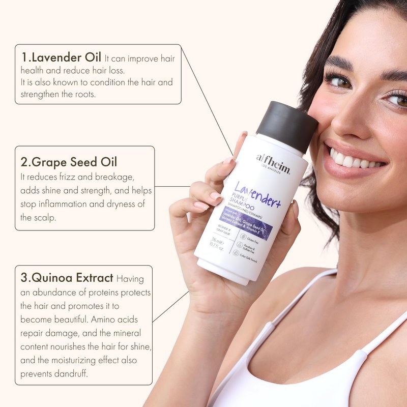 - Neutralizes Brassiness for Vibrant Color-ALFHEIM Lavender+ Purple Shampoo is specially formulated to neutralize brassy yellow tones in blonde and gray hair. Infused with natural lavender oil, this purple pigment shampoo restores bright, cool tones, giving your hair a fresh, vibrant look. Whether for post-dye maintenance or daily care, it helps you achieve a salon-worthy color every time.