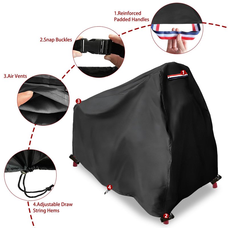 - Easy to use and fasten----The bottom of Alickwang rocking horse cover has designed elastic hem cord and 4 fixed buckles,it can be adjusted to achieve a tight custom fit.Adjustable hem cord with fixed buckles provides the cover a customizable fit with exceptional security in the windy day.And strong padded handles reduces the time and effort to install or remove the cover.