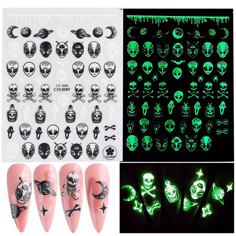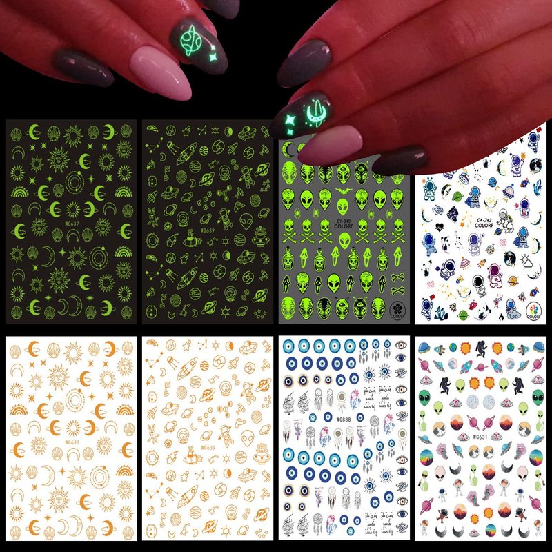 - 【Various Sizes】Fashion glow in the dark nail design, you can decorate nail glitter, nail water transfer decals, nail foils, etc. Nail sticker pattern come in many sizes, you can decorate your nails or resin nails. You can easily find the right size for creation.