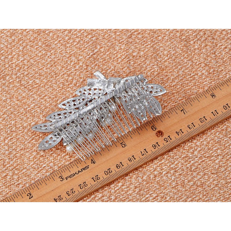 ALILANG Elegant Faux Pearl Silver Tone Crystal Rhinestone Leaves Bridal Hair Comb