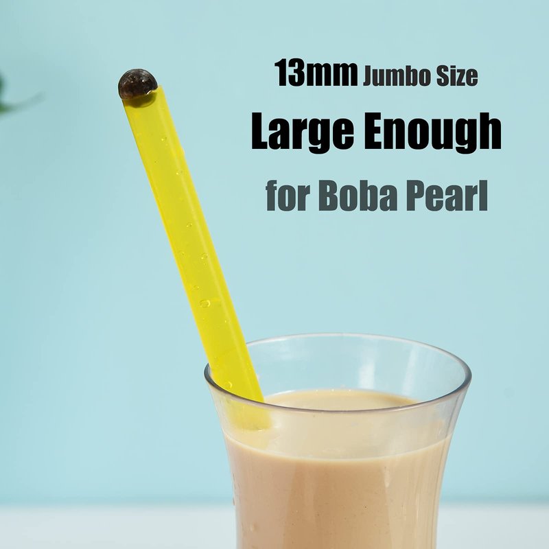 - PERFECT SIZE FOR BOBA SMOOTHIES - 12 pcs multi-colors straws + 2 cleaning brushes. 10.5" long and 0.47 Inner Diameter 0.51 Outside Diameter, 2 9-inch 12mm cleaning brush, great ideal size for fat boba bubble tea (tapioca pearls, boba pearls), frozen smoothies, thick milkshakes, jelly, jumbo drinks and more homemade thick drinks