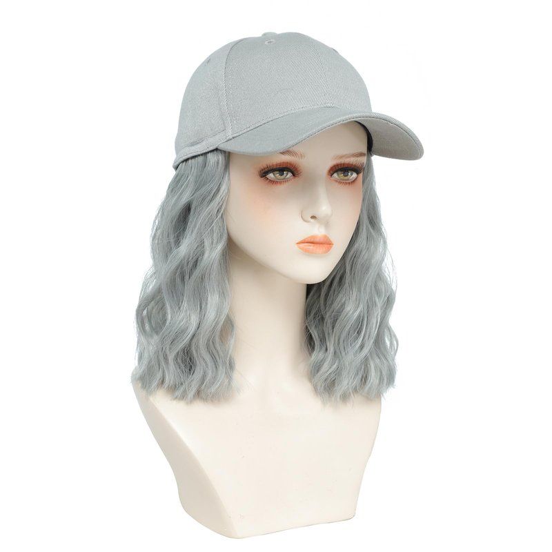 AliRobam Hat with Natural Wave hair Extensions attached for woman Baseball cap wig Short Bob Hairstyle Adjustable Wig (Grey)