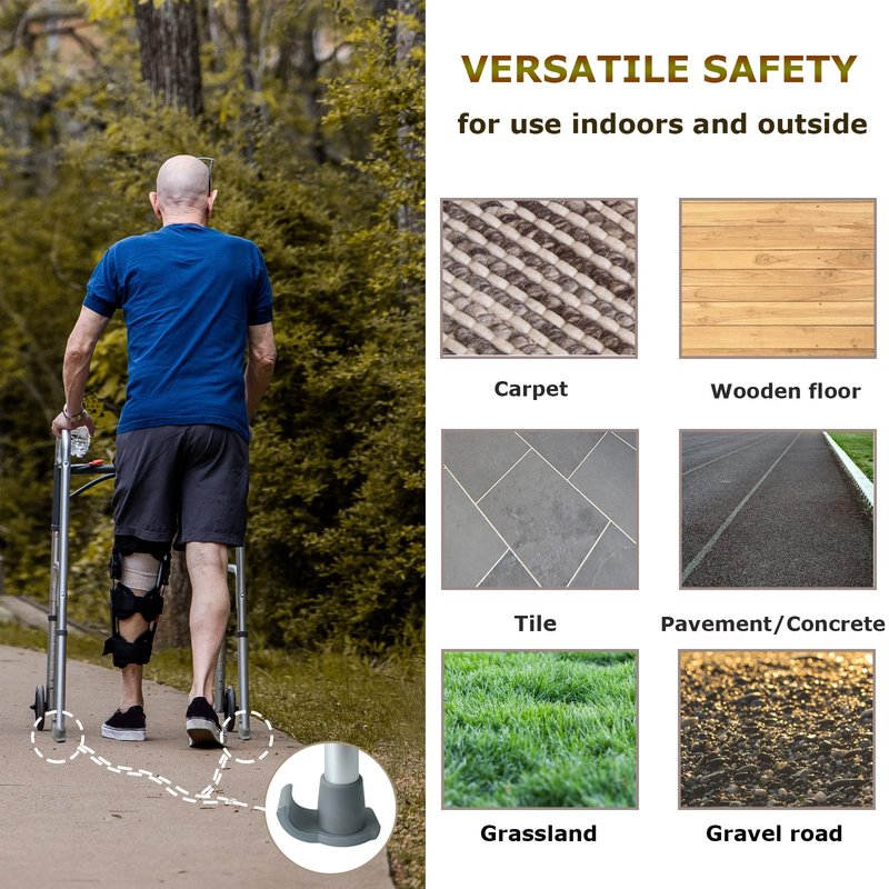 - Indoor/outdoor Use: Effortlessly glide your walker or rollator across a variety of surfaces, from carpets to hardwood floors to uneven pavement, with this durable and lightweight walker sliders.