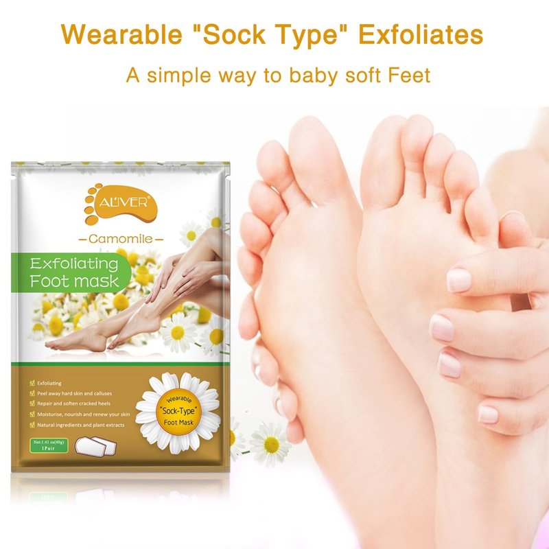 - Exfoliating Foot Mask: This foot peeling mask provides an effective treatment to remove hardened, cracked, callused skin. It can remove dead skin, repair dry and cracked skin, protect your exfoliated feet