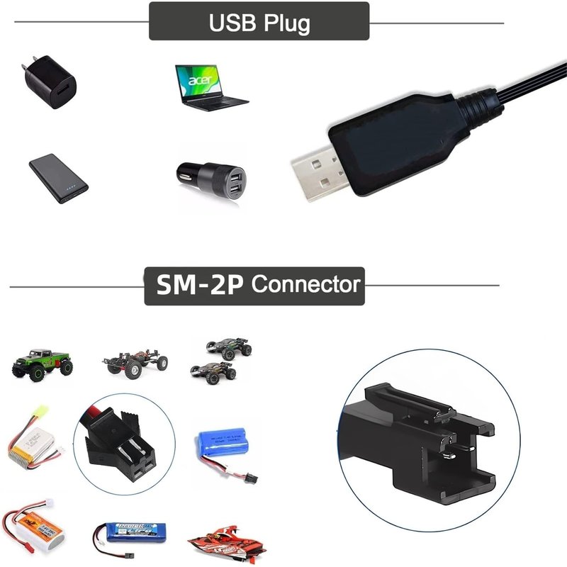 - Safe Charging: The battery charging cable has over-voltage, overload, and short-circuit protection functions. Before use, please ensure that the voltage (3.7V & 3.6V) is compatible. The input is DC 5V 2A, output is 3.7V & 3.6V 250mA, connector is USB to SM-2 Pin Plug, and length is 55cm.