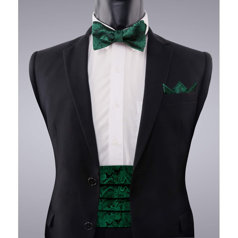 This includes fashionable and classic paisley design bow tie, cummerbund and pocket square, which are great to wear with a tuxedo suit for that special occasion, wedding, or any formal event.