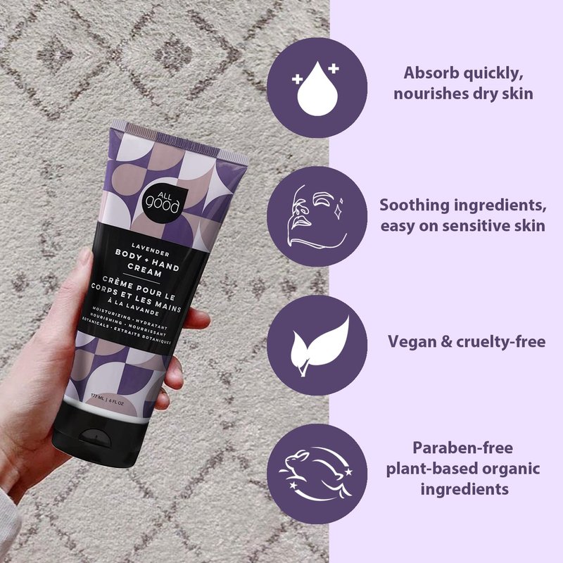 All Good Hand & Body Lotion - Moisturizing Organic Lotion, Essential Oils, Calendula, Cocoa Butter, Coconut & Rose Hip Oil, Non GMO, Vegan (Lavender)(3-Pack)