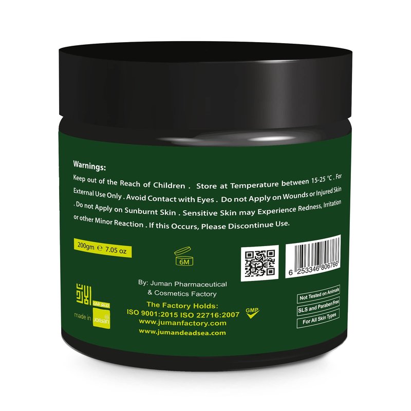 PRODUCT DESCRIPTION: A gentle deep cleansing facial mask with natural Dead Sea Mud, Tea Tree Oil, and Aloe Vera Gel, to reduce acne and blemishes. This mud mask is designed to heal and hydrate oily skin, for a more radiant and healthy appearance. INGREDIENTS: Dead Sea Mud, Tea Tree Leaf Oil, Aloe Vera Gel, Vitamin E. Dead Sea Mud: helps restore moisture to the skin, relieving dryness and irritation. It helps to Reduce the appearance of fine lines and the improvement of pores. Tea Tree Leaf Oil: Helps in the treatment of acne by calming redness, swelling, and inflammation. It may even help to prevent and reduce acne scars, leaving you with smooth, clearer healthy looking skin. Aloe Vera Gel: a natural source of treatment for a variety of skin ailments such as eczema, acne, and skin abrasions etc., It also has strong skin moisturizing properties that will leave your skin supple and refreshed. Vitamin E: helps protect the skin from UV damage, and has moisturizing effects to reduce inflammation of the skin for a smoother finish. DIRECTIONS FOR USE: Mix well before use. Make sure to keep the water which is a natural preservative ( the top layer of water located in container). Apply a layer on the face and leave to dry for (15-20) minutes. Rinse off with lukewarm water. For better results, use a moisturizer on the area after application. Has a recommended use of (1-2) times a week.