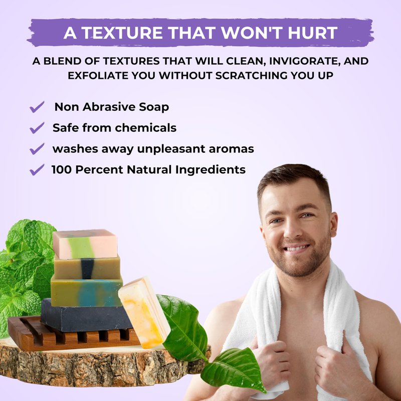 Enhance your collection of mens bathroom essentials with our all natural soap bars, perfect for both your face and body. Whether you’re looking for a refreshing cleanse after a workout or a luxurious shower experience to start your day, our men soap pack delivers it all. Experience the benefits of nature in every wash with our best-in-class natural bar soap for men.