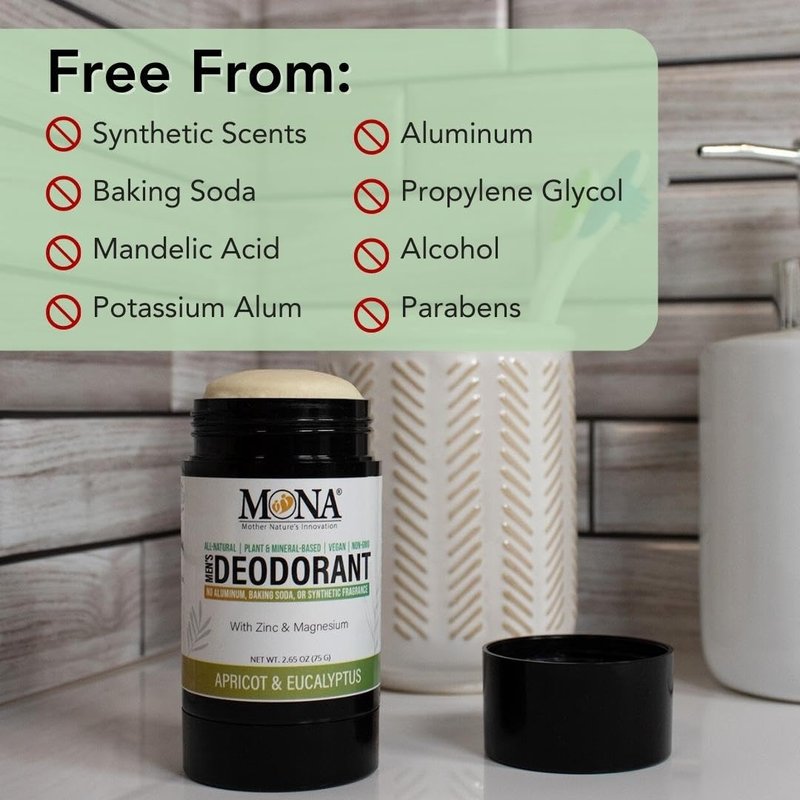 All Natural Deodorant for Men Aluminum Free | Hypoallergenic Men's Deodrant, Magnesium Deodorant for Sensitive Skin | Absorbs Sweat | Won’t stain clothes | By MONA Brands (Apricot Eucalyptus 2.65 Oz)