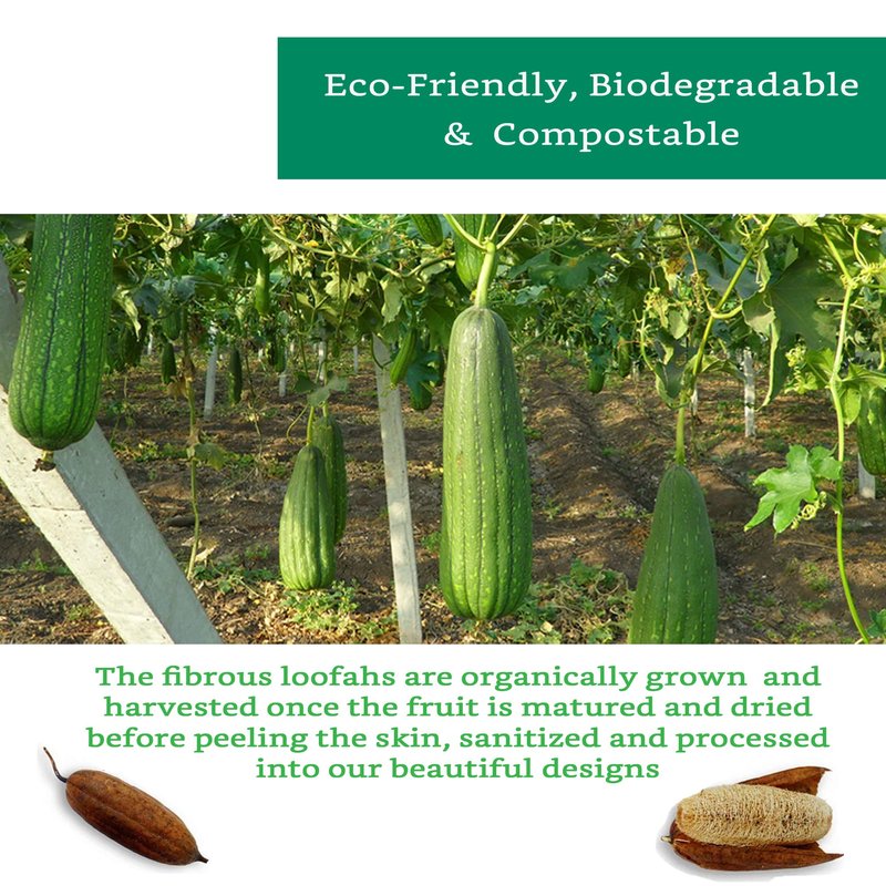 - ๐ฟ All Natural Loofa Sponge: Our Organic loofah sponges are made from 100% natural plant-based Gourd Loofah plant fibers that are harvested and processed with care and free of any chemicals and harsh processes that could harm them.
