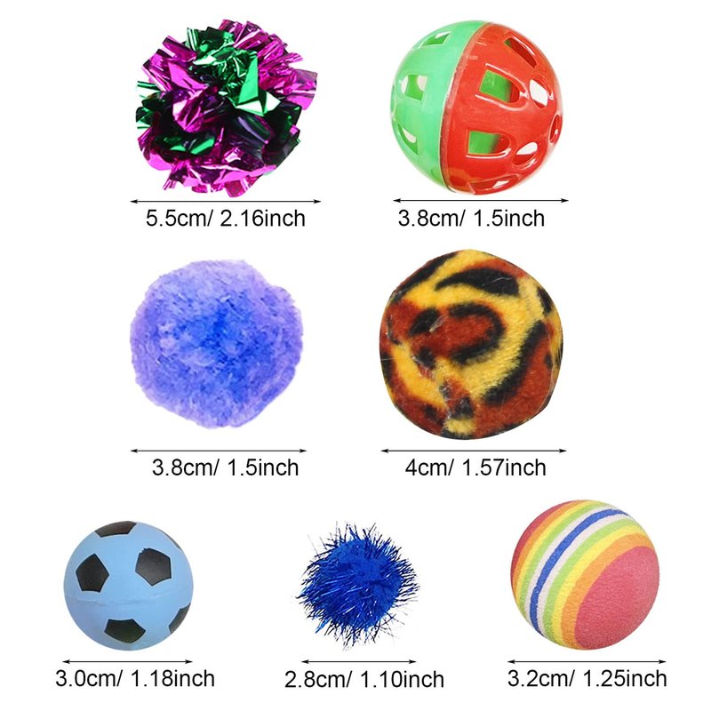 - Safe Material: cat balls toys made of environment-friendly materials, safte and comfortable for cats. Size: The balls size are 3.5cm - 5cm.