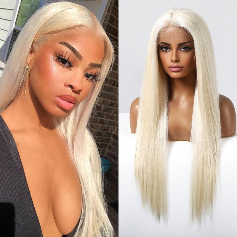 Allbell 613 Synthetic Lace Front Wig 28Inch Blonde Wigs for Women Long Straight Platinum Blonde Wig with Baby Hair Free Part 13×4 Frontal HD Lace Wig Heat Resistant Fiber