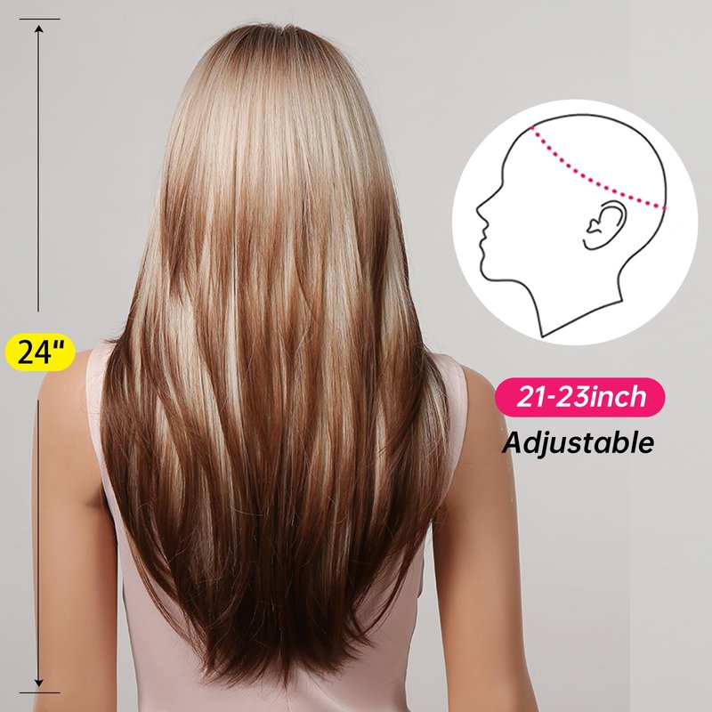 - Style and Benefits:This 24inch long straight layered wig is soft,full,and thick.Wig with curtain bangs is suitable for any face shape.Stylish appearance helps you change your style and become more confident and charming.