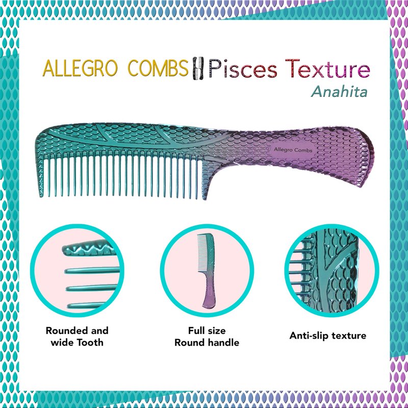 Allegro Comb 1004 Wide Tooth Detangling Hair Combs For Women, Stylists & Curly Hair Teasing Comb Mens Comb 1 Piece. (Blue Purple Anahita)