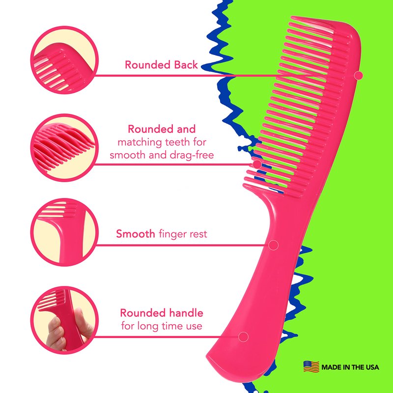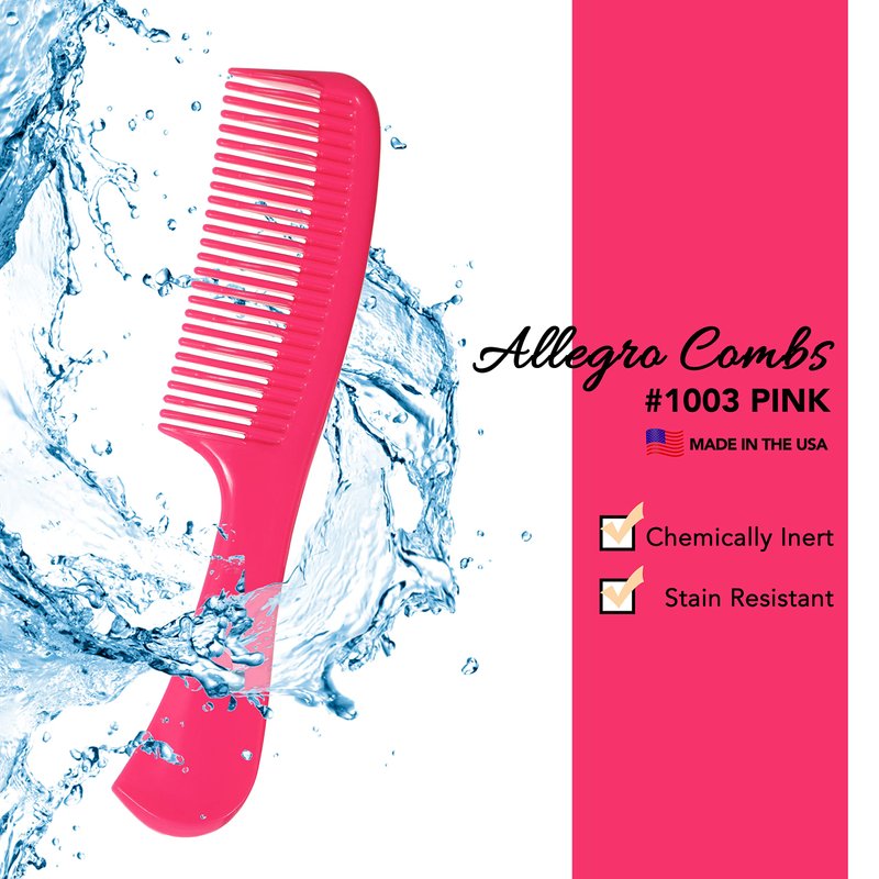 - Made in the USA for multiple applications: Allegro Combs #1003 tangle tamer with handle great wide tooth comb for curly hair for wet or dry hair, thick hair, curly hair, children's hair. The detangle combs with standout colors works great for all hair types, handle for better gripping nicely in shower curly hair detangler.
