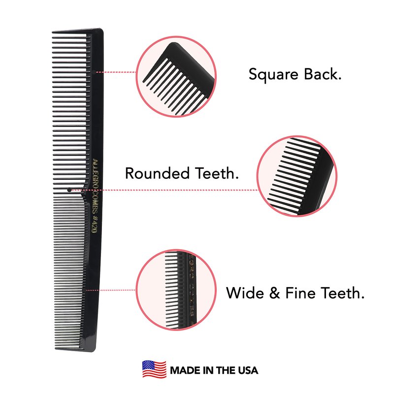 - MADE IN THE USA - with the trust and reliability of a product designed and made in the USA. we have worked hard to bring the best hair combs with perfectly matched teeth to eliminate drag, split ends or scratching. Allegro Combs 420 features wide tooth comb and fine tooth comb all in comb.