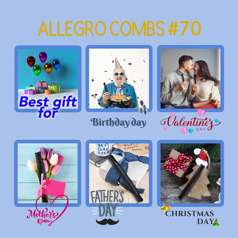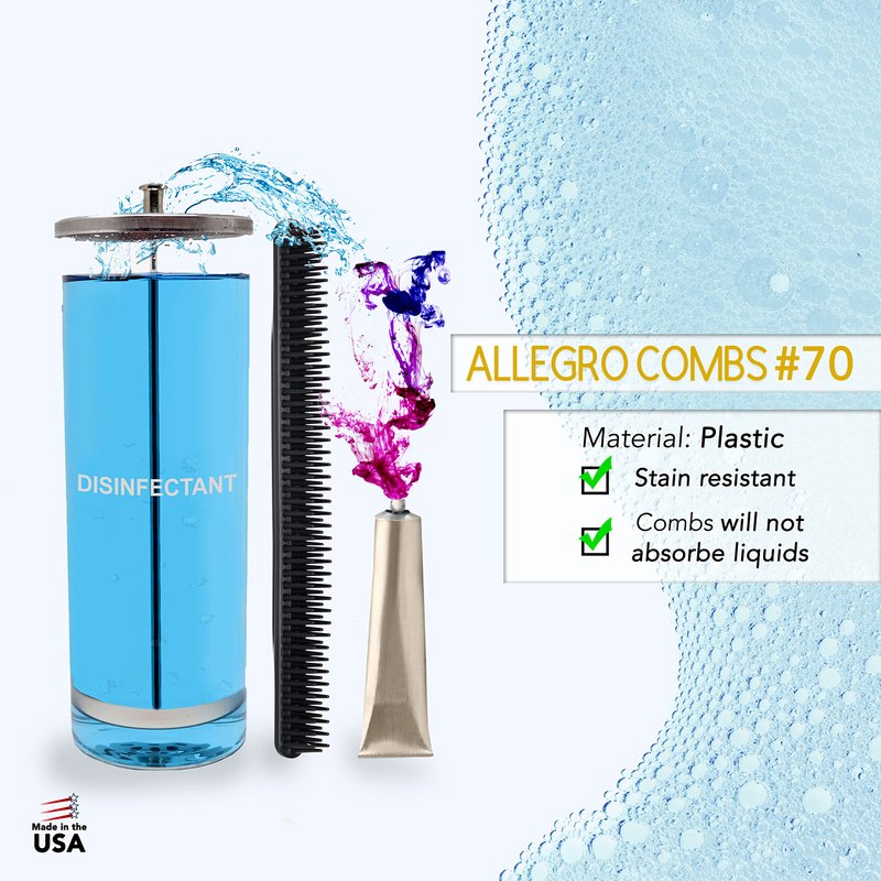 Allegro Combs #70 is a quality, 3-row comb designed to provide the ultimate detangling solution while enabling you to attain a salon-worthy look right at home. Proudly made in the USA. The comb's unique 3-row design makes it perfect for detangling and product application. Its wide-tooth design guarantees manageable, tangle-free hair, and its rounded teeth gently caress your scalp, minimizing hair breakage or damage. Additionally, the convex back design prevents product buildup, making cleaning straightforward. The Allegro Combs #70 is also resistant to staining and fading, retaining its vibrant color over time. Available in trendy, standout colors, this comb injects a dash of style into your haircare regimen. With its 7.80-inches length, it's travel-friendly and easily fits in your purse or bag. It's the perfect haircare gift for those who cherish their hair. More than a detangler, this comb is a versatile styling tool, perfect for parting, braiding, and crafting intricate hairstyles. It's ideal for thick and curly hair types. It's also designed to train your curls, making it a great choice for curly hair, barbershops, and all genders and ages. This hair comb is excellent for braiding, styling, and finishing, making it a versatile tool for all hair types. Its medium tension tooth comb is perfect for wet hair, while its wide tooth comb is ideal for wavy hair. Furthermore, the super wide tooth comb is perfect for fine hair. Its 3-row detangling comb feature facilitates easy hair detangling and styling, while its curling comb feature is perfect for curl training and styling. It's also great for shower use and is kid-friendly, thanks to its gentle touch on their delicate hair and scalp.
