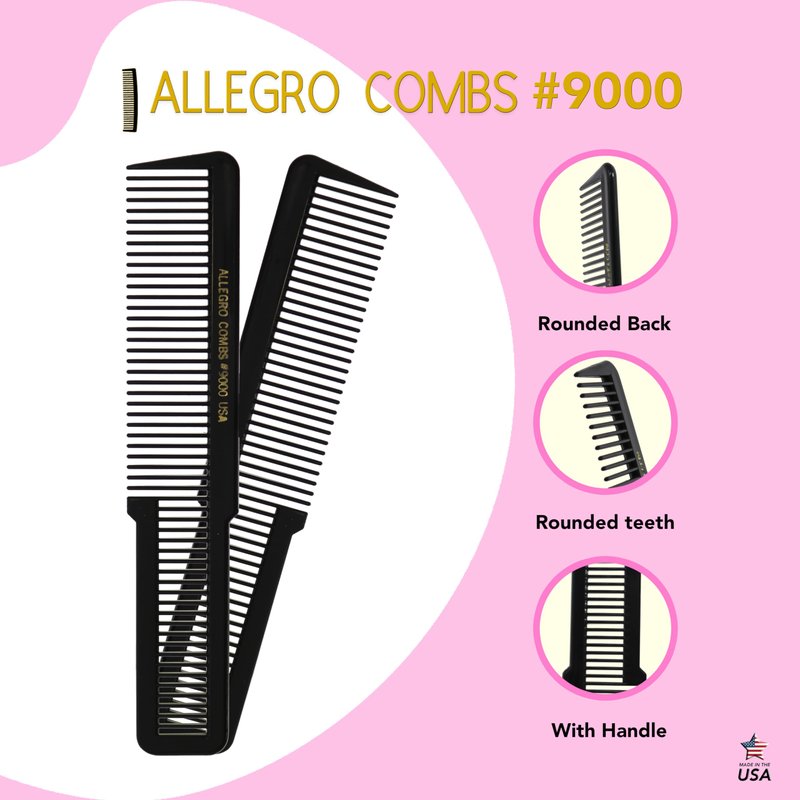 Allegro Combs 9000 Clipper Blending Cutting Wide Teeth Hair Comb For Fading Barbers Hairstylist Men Women Shower Comb Shampoo Styling 1 Piece (Black)