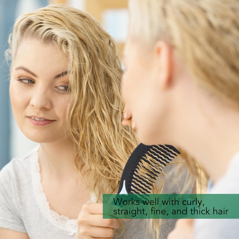 - WAVY WIDE TOOTH COMB DETANGLER: hair products for curly hair with unique wavy tooth wide tooth comb for wet hair designed to evenly distribute hair facilitating seamless detangling. Hair parting comb
