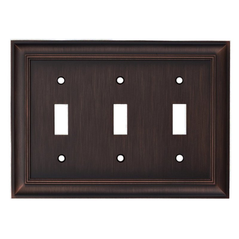 allen + roth 3-Gang Oil-Rubbed Bronze Standard Triple Toggle Metal Wall Plate