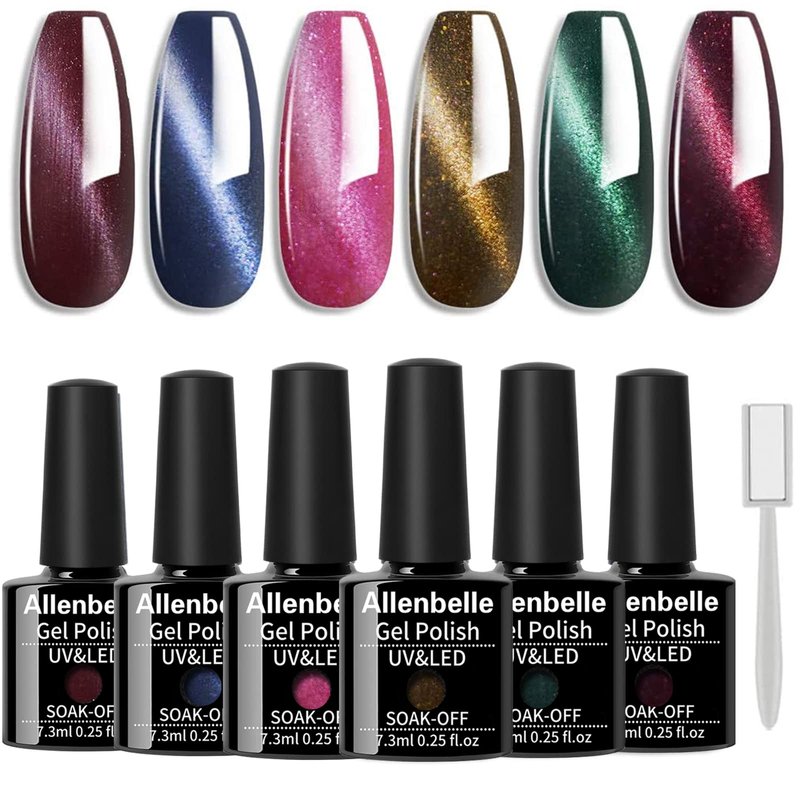 Allenbelle Magnet Gel Nail Polish Cat Eye Gel Nail Polish Soak Off UV Magetic Gel Nail Polish (with Magetic,7.3Ml)003