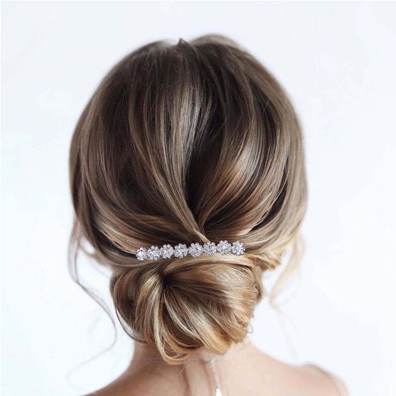 Allereyae Rhinestone Hair Comb Barrette Crystal Wedding Hair Comb Barrette Silver CZ Bling Bridal Headpieces Decorative Head Clip Headwear Bridal Hair Accessories for Women (Style 3)