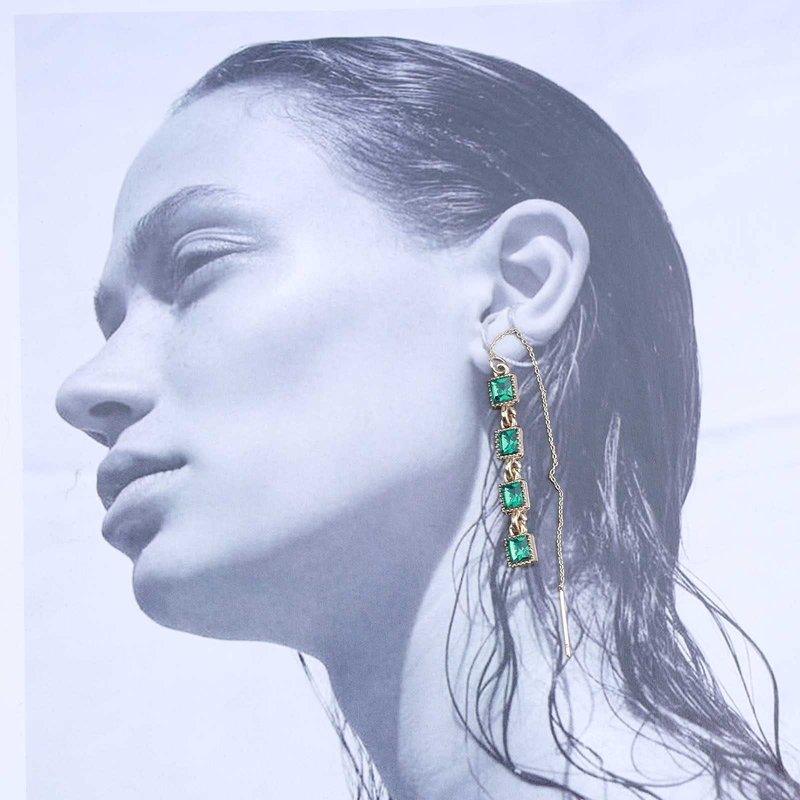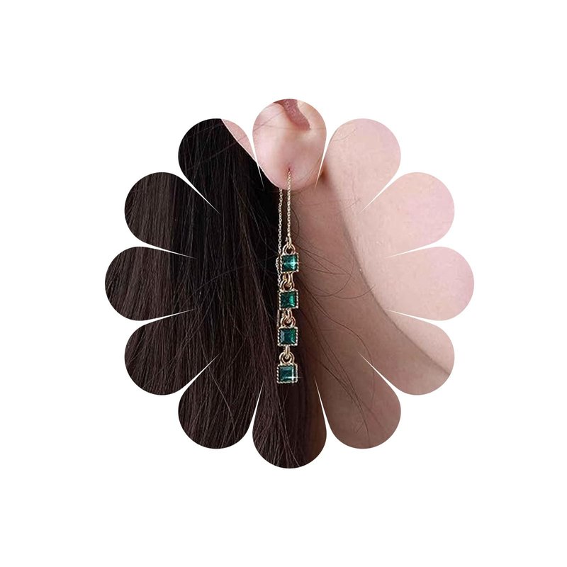 - Green emerald ear threader earrings keep color and sturdy,simple yet classic.Own your timeless notion of beauty.