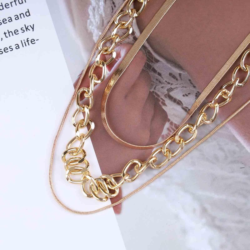 Allereyae Vintage Layered Snake Chain Necklace Chunky Cuban Chain Necklace Gold Thick Chain Necklace Punk Curb Chain Necklace Jewelry for Women