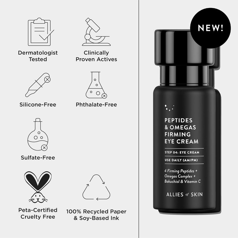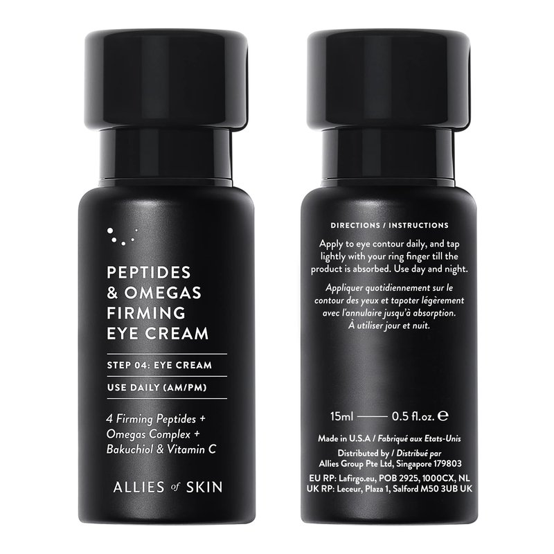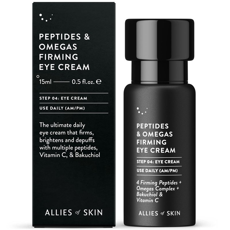 Allies of Skin Peptides & Omegas Firming Eye Cream: Vitamin C, Bakuchiol, Ceramide. For Dark Circles, Wrinkles & Puffiness. Anti-Aging. Firms & Brightens Under Eye Area 0.5 oz / 15 ml