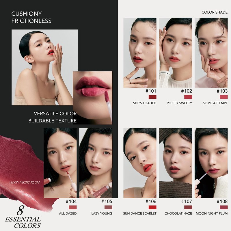- A soft texture that lightly adheres to the lips and long lasting without feeling heavy.