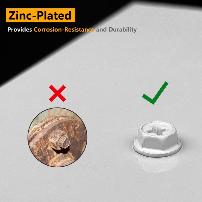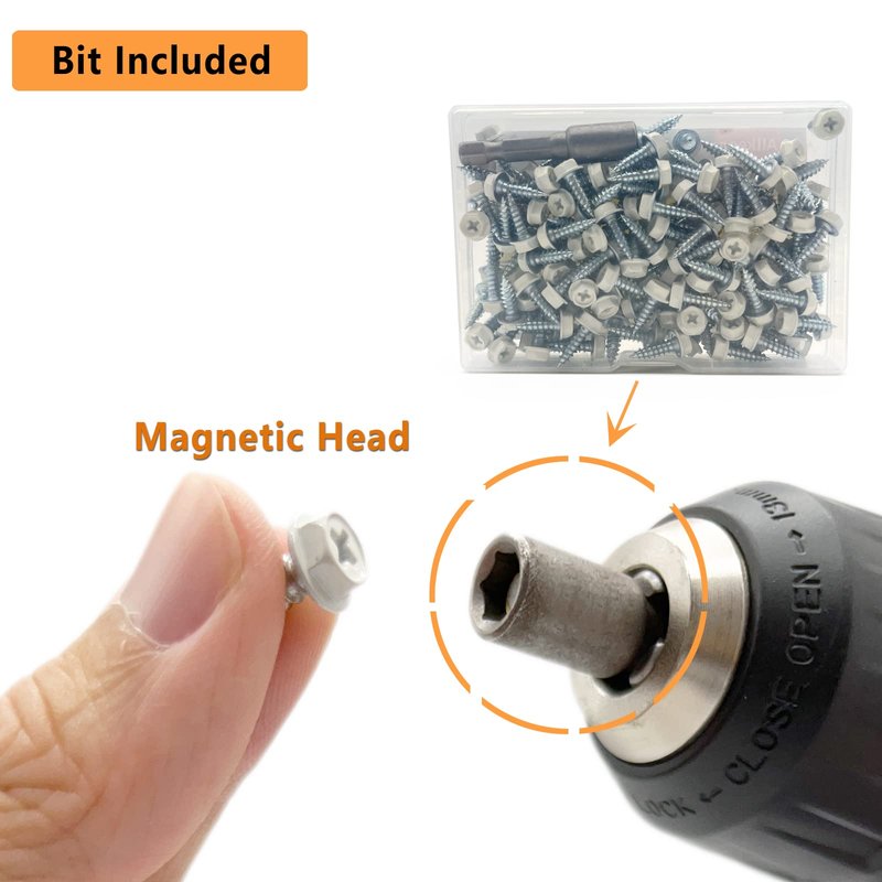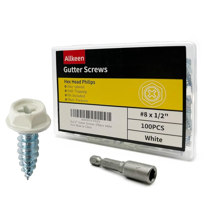 Allkeen Self-Tapping Gutter Screws White Painted Hex Head #8 x 1/2" Zinc Plated Finish, 100 Pieces, Socket Bit Included