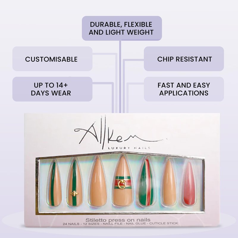- Durable: Allkem Press-On Nail Sets offer Durable and high-quality salon style nails that don't damage your nails. Allkem nails give you high quality manicure in minutes at the comfort of your home