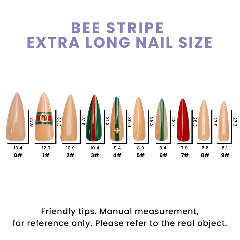 Allkem Bee Stripe Sculpted Stiletto Press on Nails | Glossy Extra Long Stiletto| 10 sizes - 20 pcs Nail kit with Glue