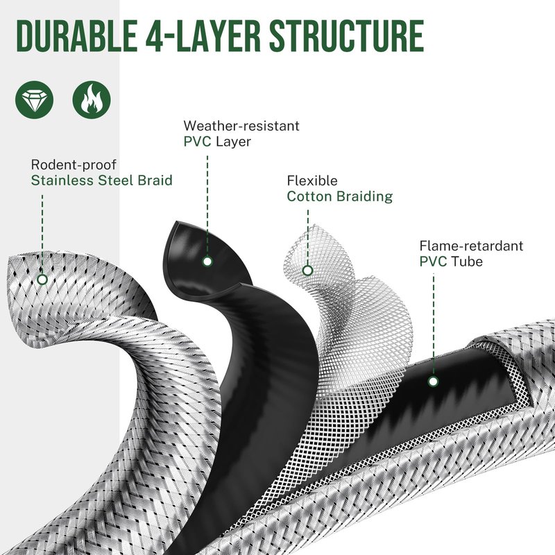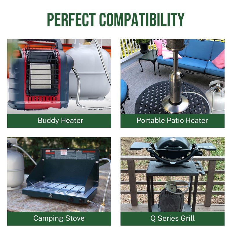 - Durable Hose Construction for Safer Connection — Updated stainless steel braiding protects the propane tank hose from rodents’ chewing. The propane hose consists of weather-resistant PVC, highly tensile cotton braiding, anti-corrosion PVC tube and stainless steel braiding. With a sturdy and flexible 4-layer structure, the propane adapter is strong enough to withstand harsh outdoor environments, ensuring durability.