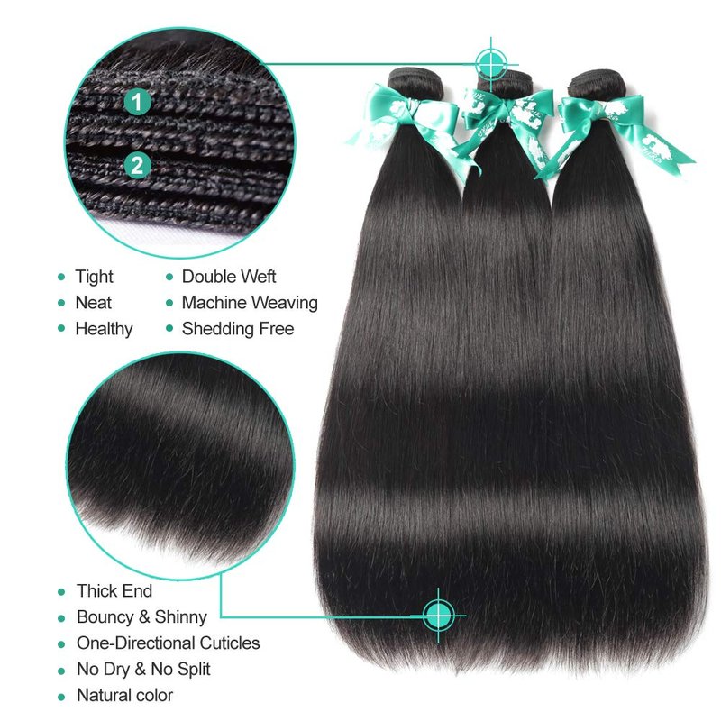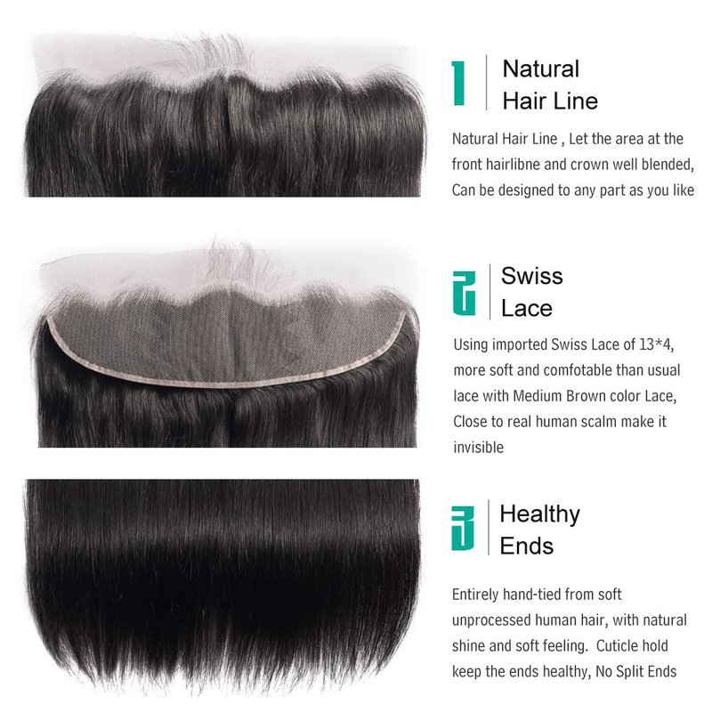 - Hair Material:Straight Hair Bundles with Frontal,100% Unprocessed Brazilian Virgin Hair Bundles with 13x4 Lace Frontal