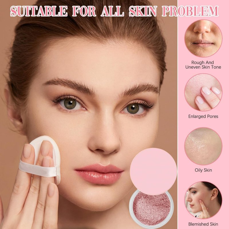 AlluraBeauty Blurring Powder,Blurring Setting Powder,Beauty Blurring Powder, Pink Setting Powder Makeup Waterproof,Pink Powder Loose Setting for All Skin Tones (Pink, A)