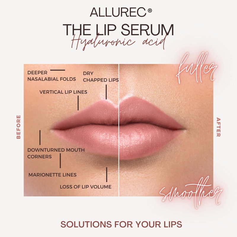 ALLUREC™ Lip Plump Perfection Filler. Lip Lines & Wrinkles Around Mouth Repair Anti Aging Lip Treatment. Lip Plumping Moisturizing Peptides Serum for Softer, Smoother, Fuller, Younger Look Lips.