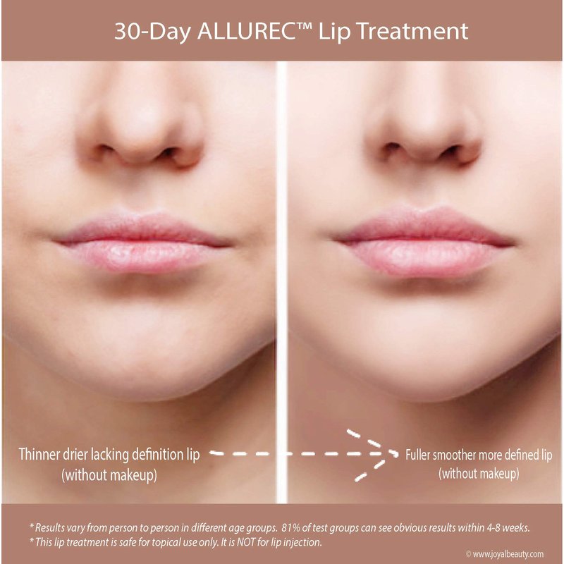 ALLUREC LIP PLUMP: PERFECTION FILLER is designed to bring back the beautiful lips of younger days – smooth and moist with high definition and volume. This amazing treatment creme also makes an excellent base for lipstick, lip liner and gloss. Lip color stays put while “feathering” is a thing of the past. Used often throughout the day and right before bed, it helps return youthful contours for a perfect pout – and something to smile about. Volumizing multi-Peptides and Revinage – a retinol-mimic without the irritation – are blended with the lush richness of Shea Butter and antioxidant-rich Pomegranate and Cranberry oils. Added to this remarkable agefighting formula is the exceptional hydrating and repair properties of chirally-correct Dexpanthenol. The result is younger-looking, exceptionally smooth and remoisturized lips. Feather lines are diminished or eliminated completely, lip fullness appears to return and damaged surface areas are smoothed and comforted.