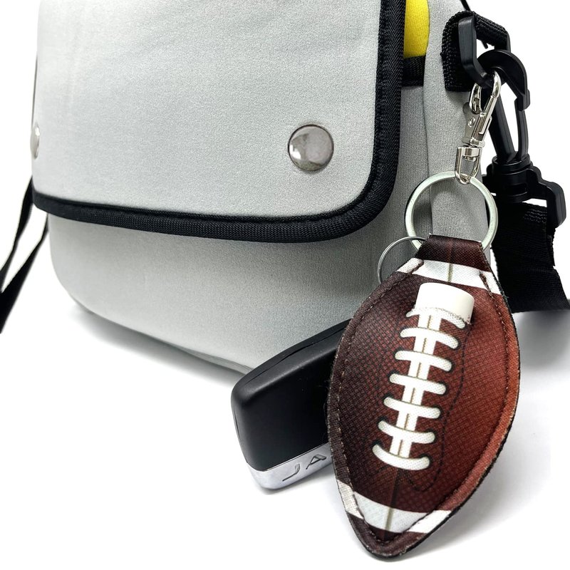 allydrew 10 Pack Chapstick Holder Keychain, Keyring for Lip Balm Lip Gloss Lipstick with 10 Pieces Metal Keyring Clasps, Football