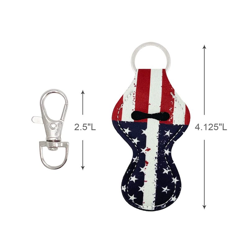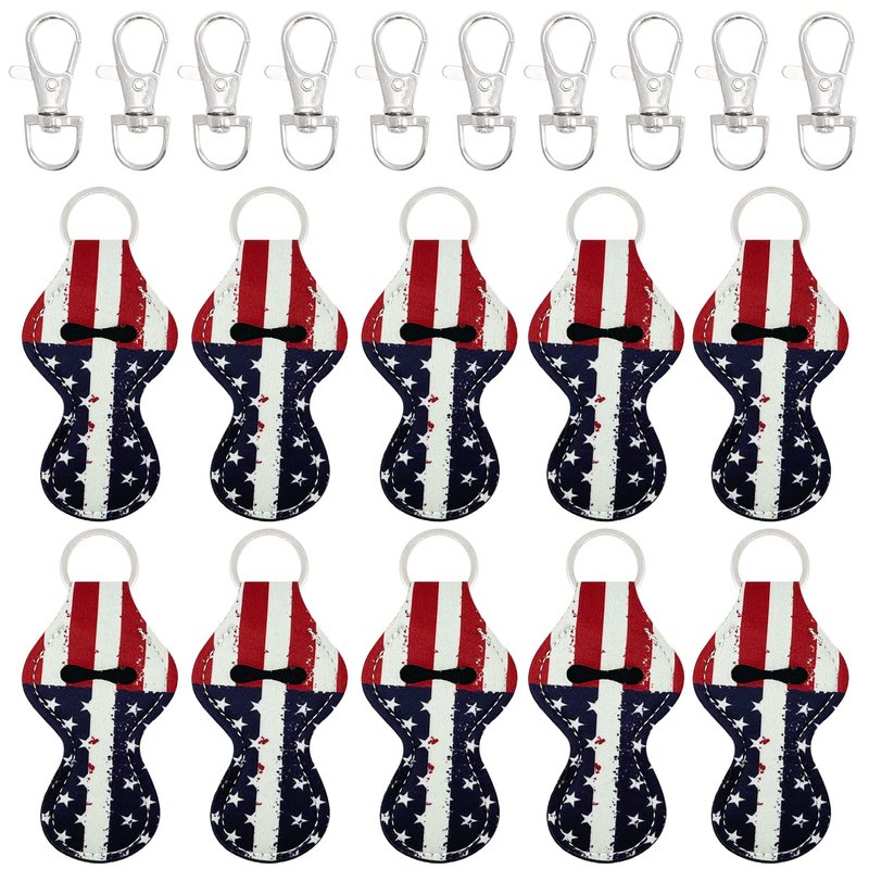 allydrew 10 Pack Chapstick Holder Keychain, Keyring for Lip Balm Lip Gloss Lipstick with 10 Pieces Metal Keyring Clasps, Patriotic Flag