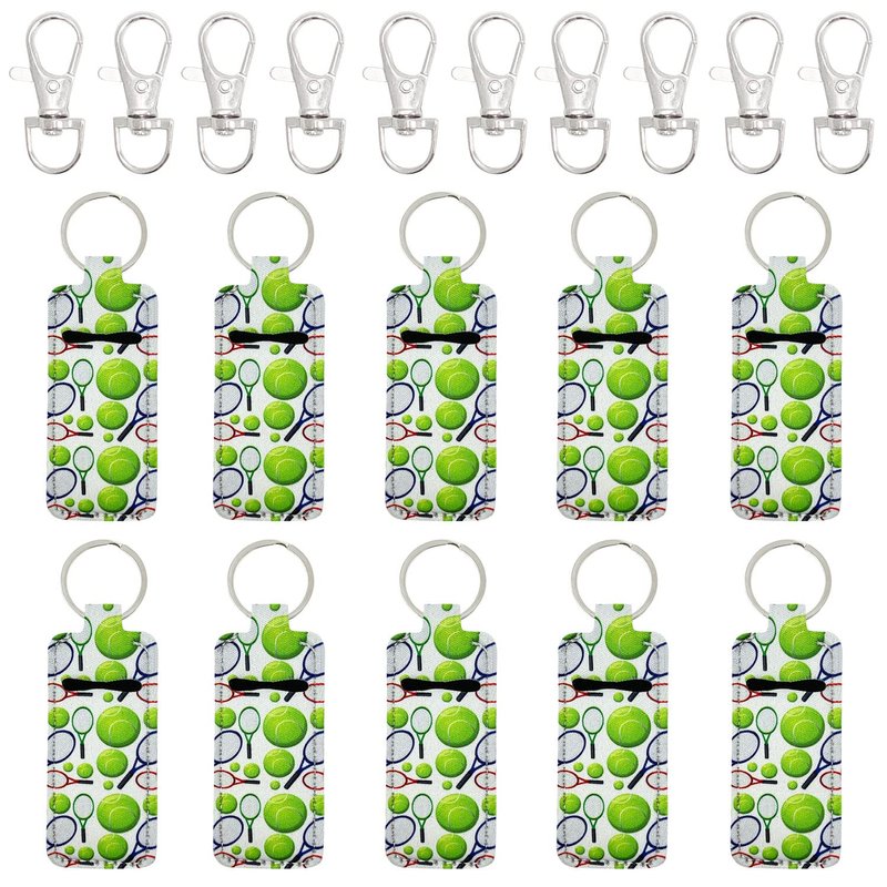 allydrew 10 Pack Chapstick Holder Keychain, Keyring for Lip Balm Lip Gloss Lipstick with 10 Pieces Metal Keyring Clasps, Tennis