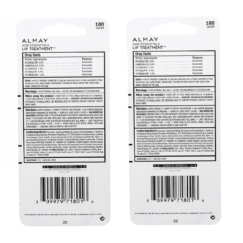 Almay A Pack of 2 Almay Age Essentials Lip Treatment, Clear 100