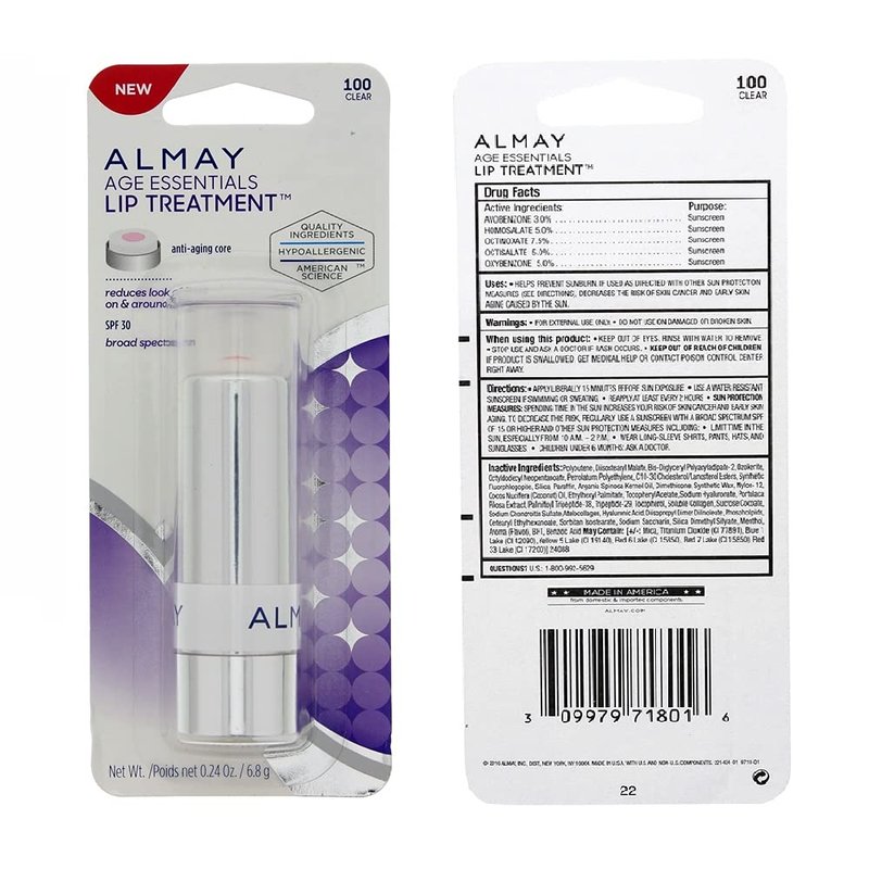 Increase the definition of your lips with the Almay Age Essentials lip treatment. Reduce the appearance of fine lines and vertical lines for a more youthful appearance. This hypoallergenic lip balm is made of ingredients that are safe for people with sensitive skin. It has a broad-spectrum SPF 30 formula to protect you against the sun's ultraviolet radiation. This stick contains 0.24 ounces of lip treatment.