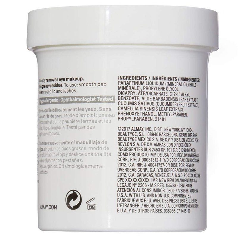 Almay Longwear & Waterproof Eye Makeup Remover Pads, Hypoallergenic, Cruelty Free, Ophthalmologist Tested, 80 Pads