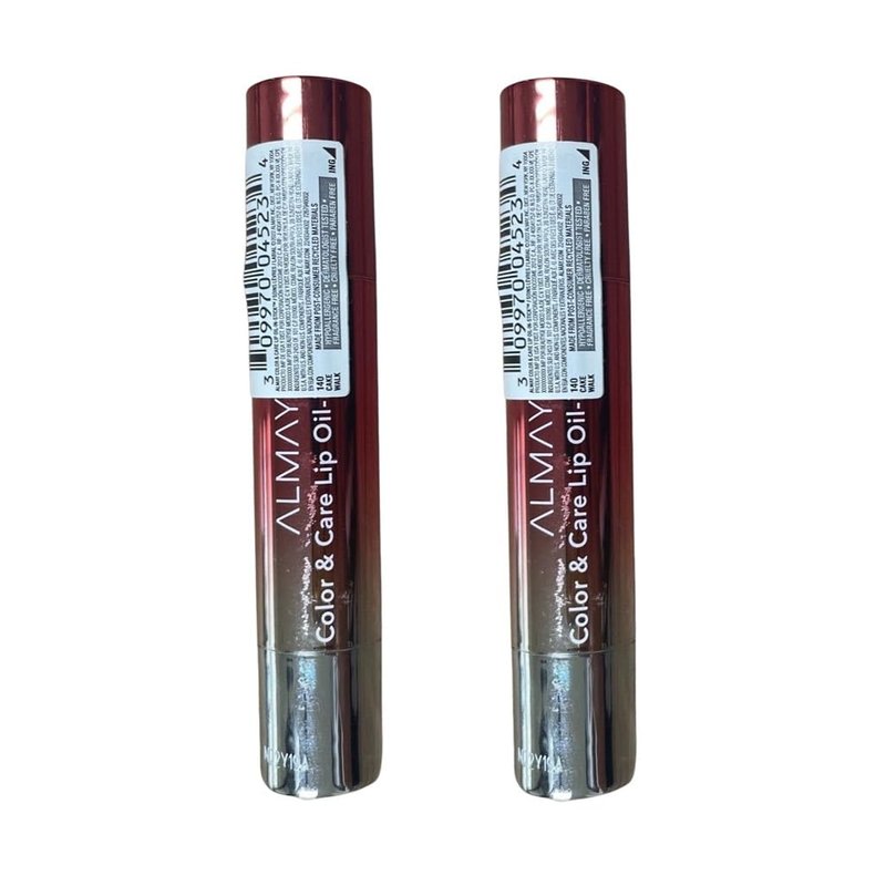 Pack of 2 Almay Color & Care Lip Oil-in-Stick, Cake Walk 140 Lightweight formula glides on smoothly for a sheer wash of color and a comfortable, non-sticky feel that makes your lips feel smoother, healthier, moisturized and nourished Enhances lip color and leaves lips with a healthy glow and a finish that shines Formulated with a conditioning oil complex; a blend of Abyssinian oil, Buckthorn berry, Sunflower oils and Evening primrose oils Suitable for sensitive skin and lips. No added parabens and phthalates As always, Hypoallergenic. Dermatologist tested. Clean. Cruelty Free. Fragrance Free. Oil-Free 0.09 oz / 2.5 g x2